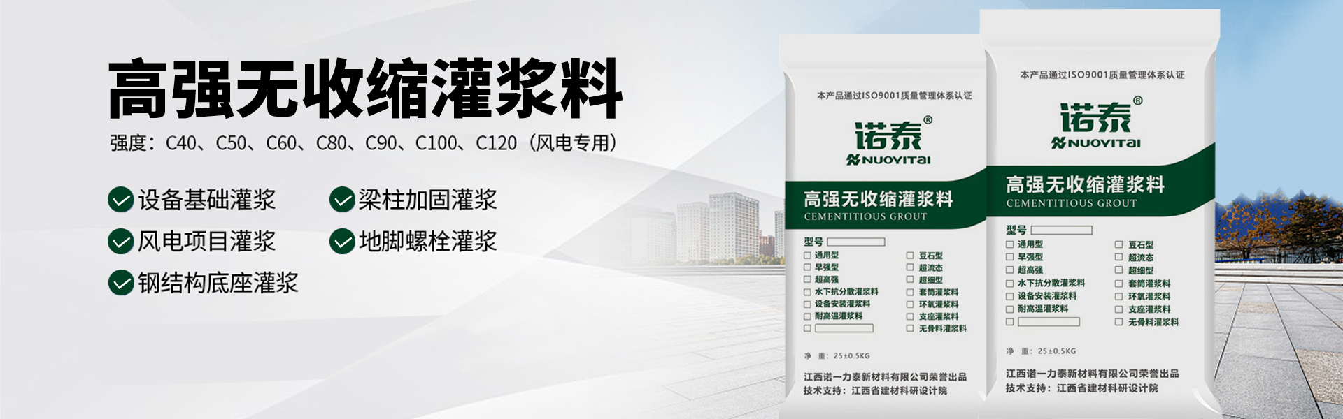 江西諾一力泰新材料有限公司位于江西宜春奉新縣,是專業從事灌漿料水泥路面修補砂漿抗裂砂漿、防水砂漿、保溫砂漿隔聲砂漿粘結砂漿等砂漿系列產品生產銷售的廠家。
